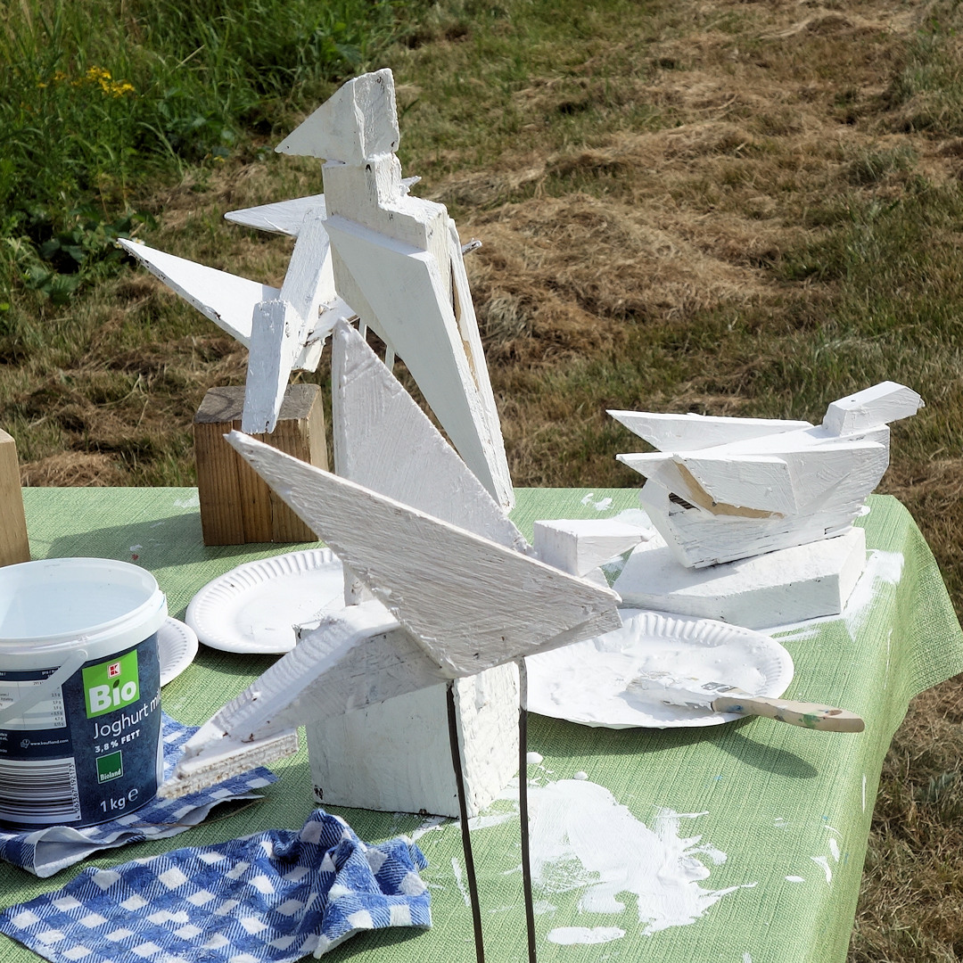 Enstanden sind so Bilder und kleine, lustige Skulpturen, die man in einer Mitmach-Ausstellung am 29. Juni bewundern darf.