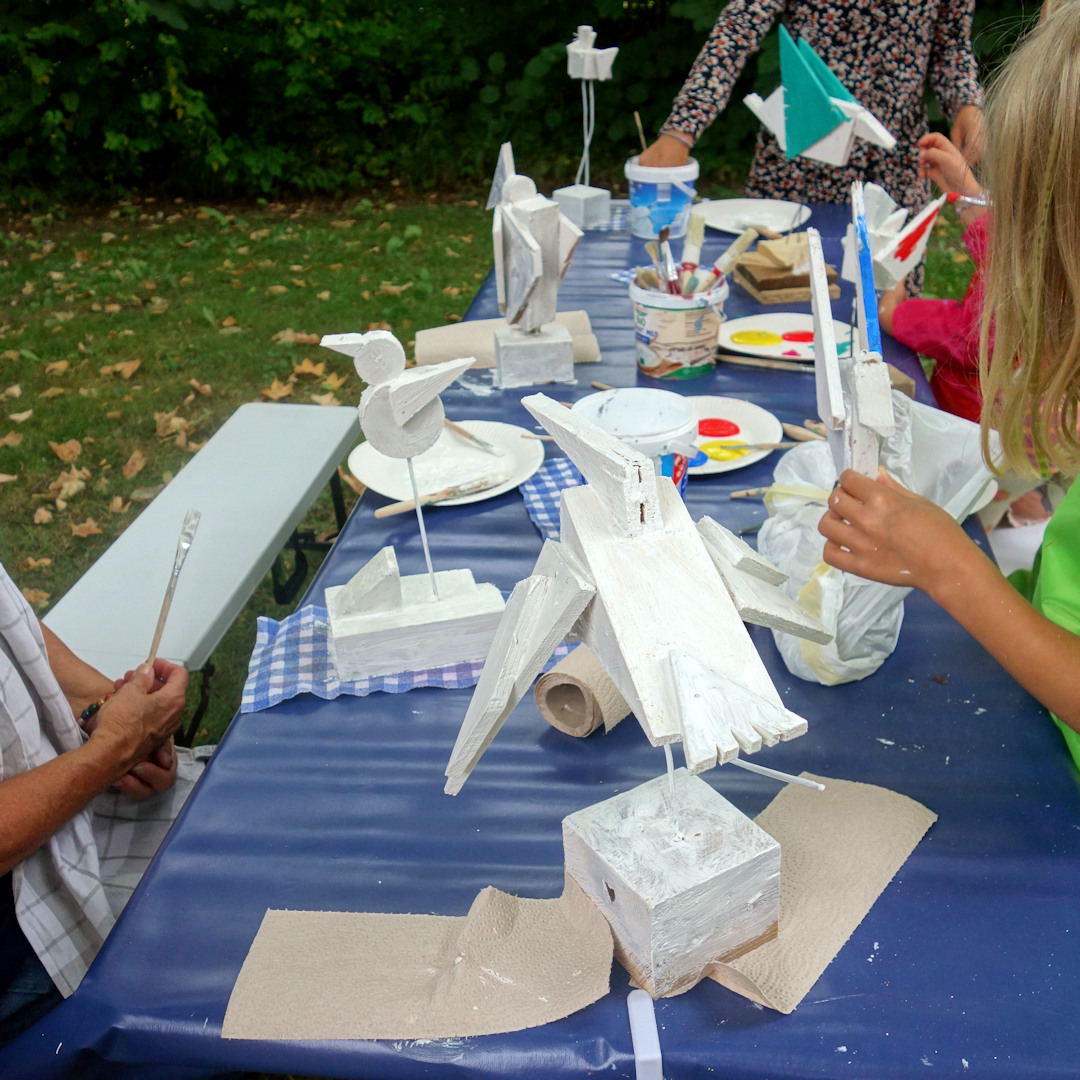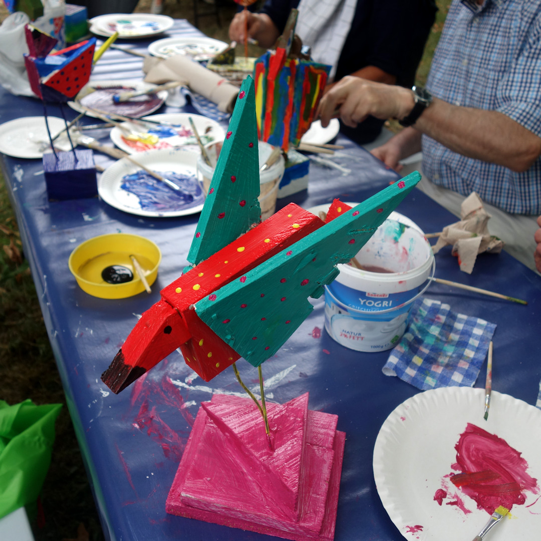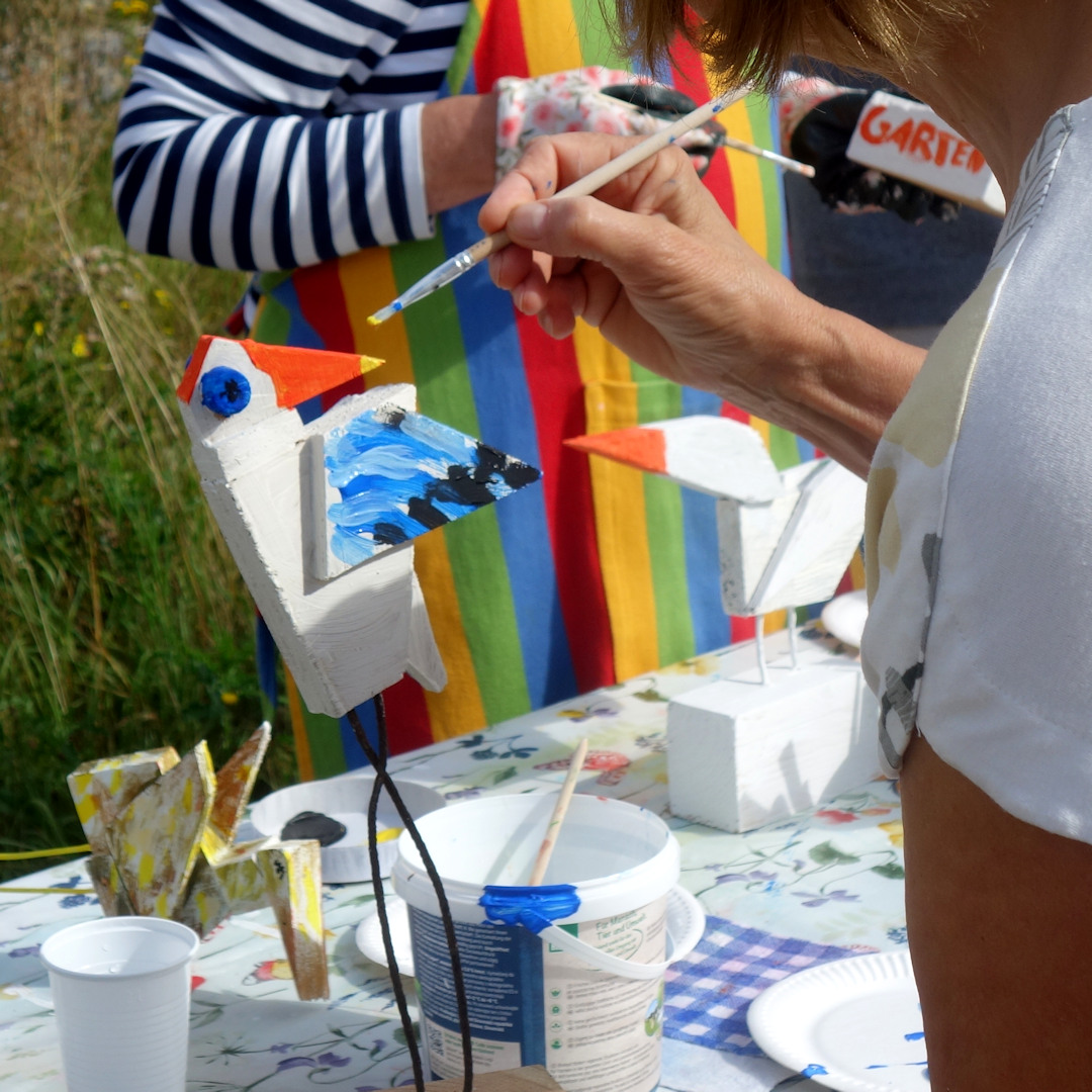 Auch am zweiten Termin, den 28.8., war das Interesse groß - alle Vögel (!) sind jetzt bemalt, ein stolzes Ergebnis!!