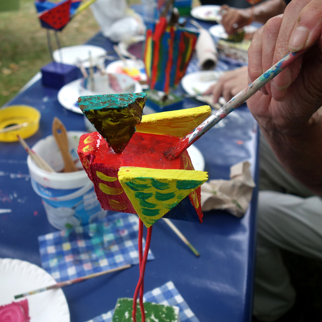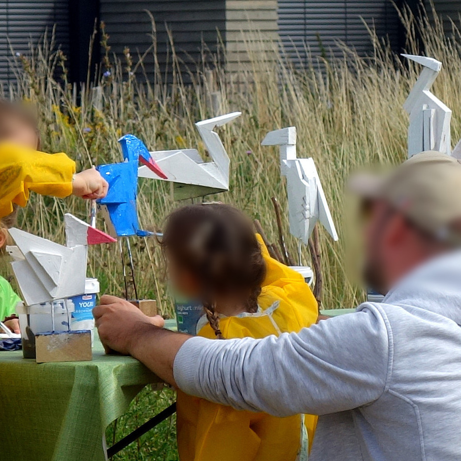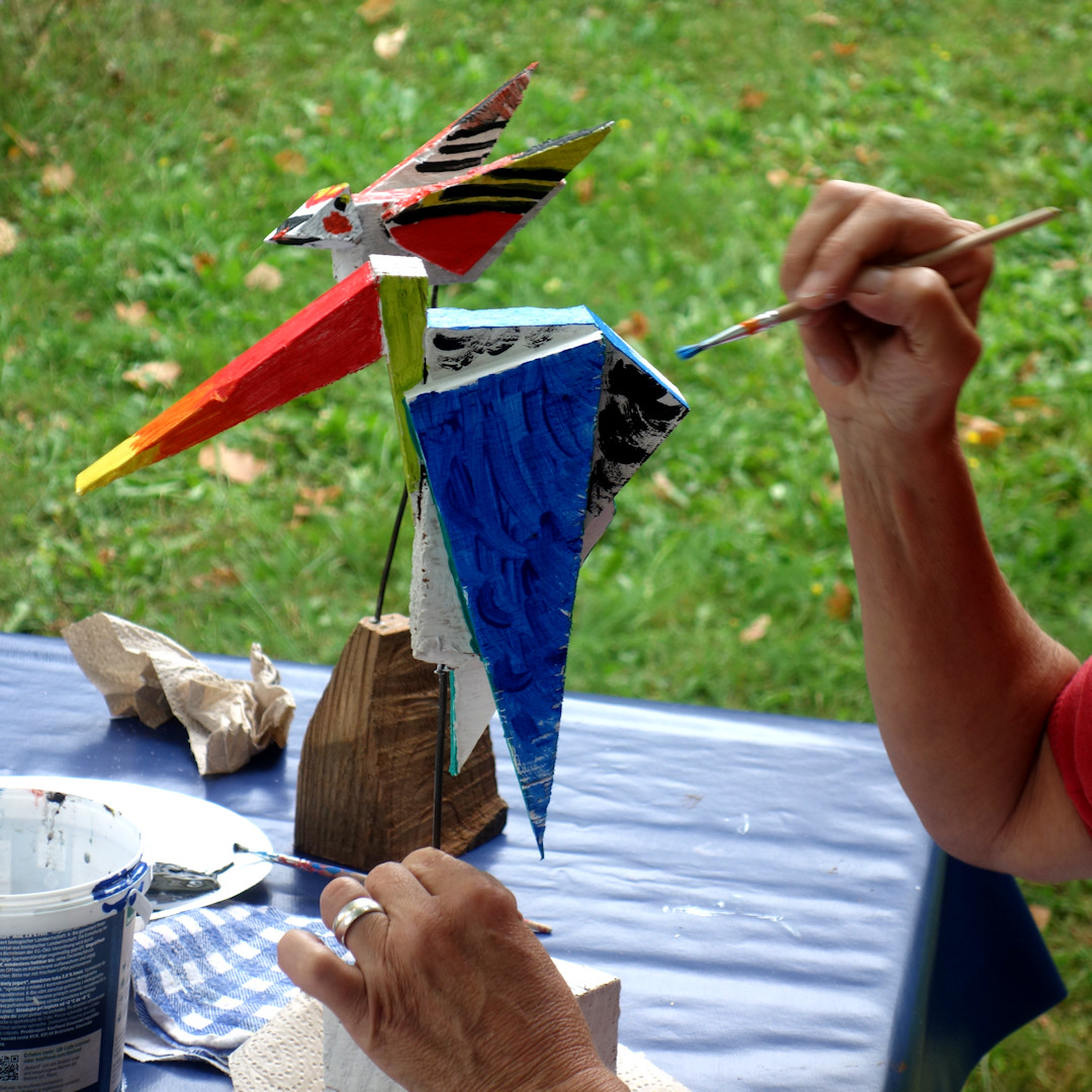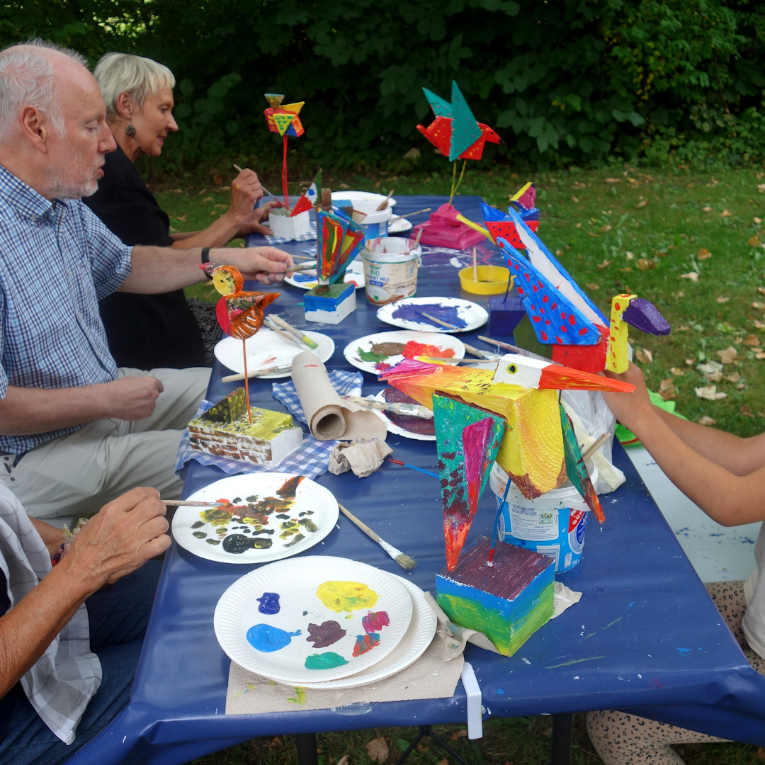 Auch am zweiten Termin, den 28.8., war das Interesse groß - alle Vögel (!) sind jetzt bemalt, ein stolzes Ergebnis!!