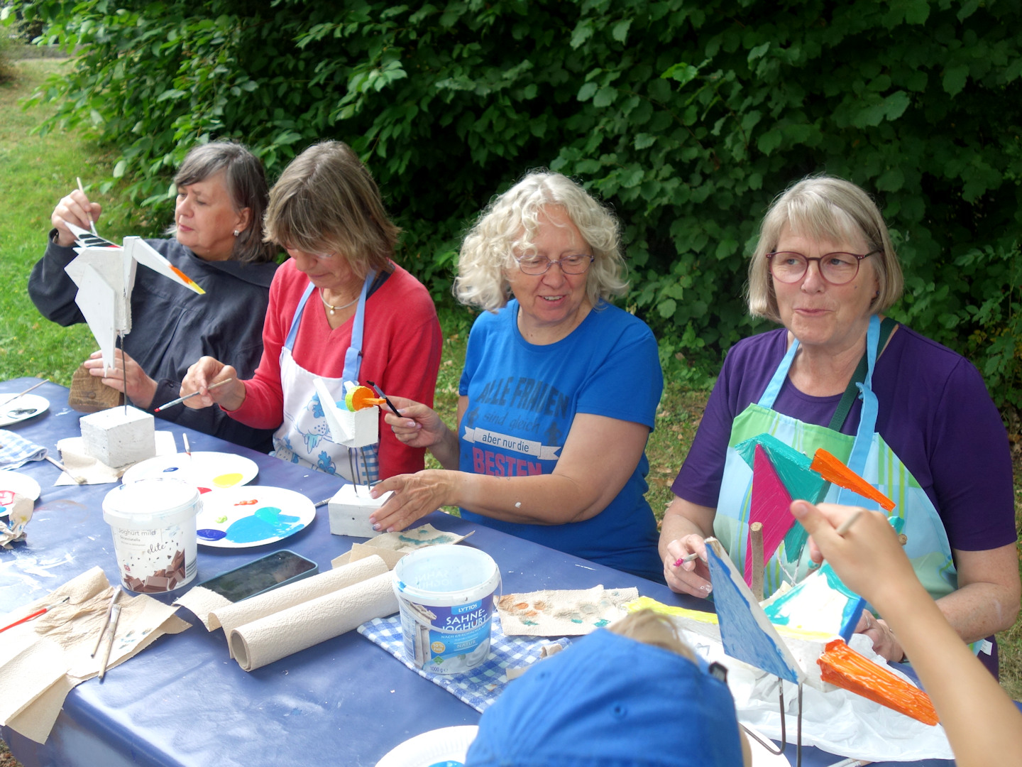 Am Samstag, den 14. Juni, trafen sich nachmittags neun Personen, um in dem Workshop für Erwachsene und Kinder mit Elke Almut Dieter und Annette Prüße kreativ zu werden.