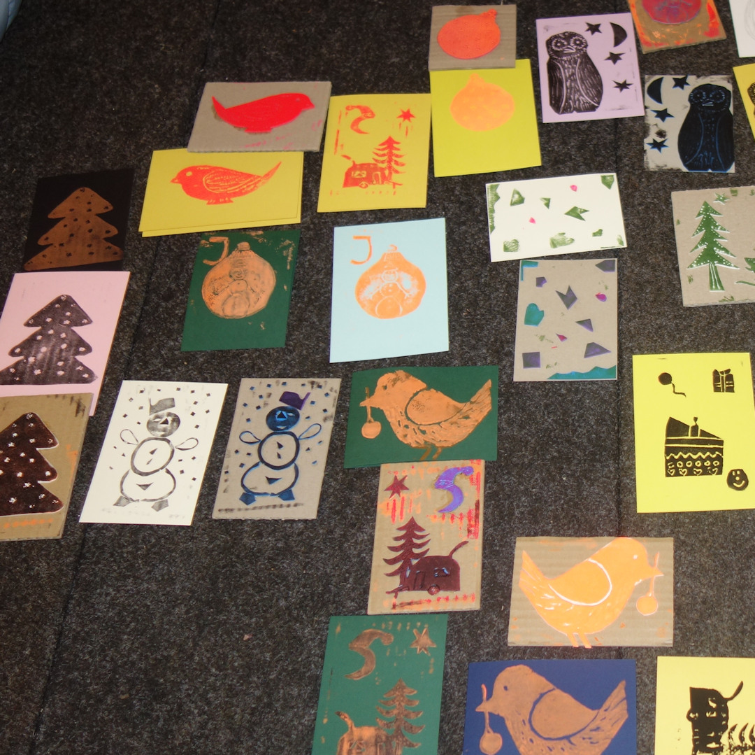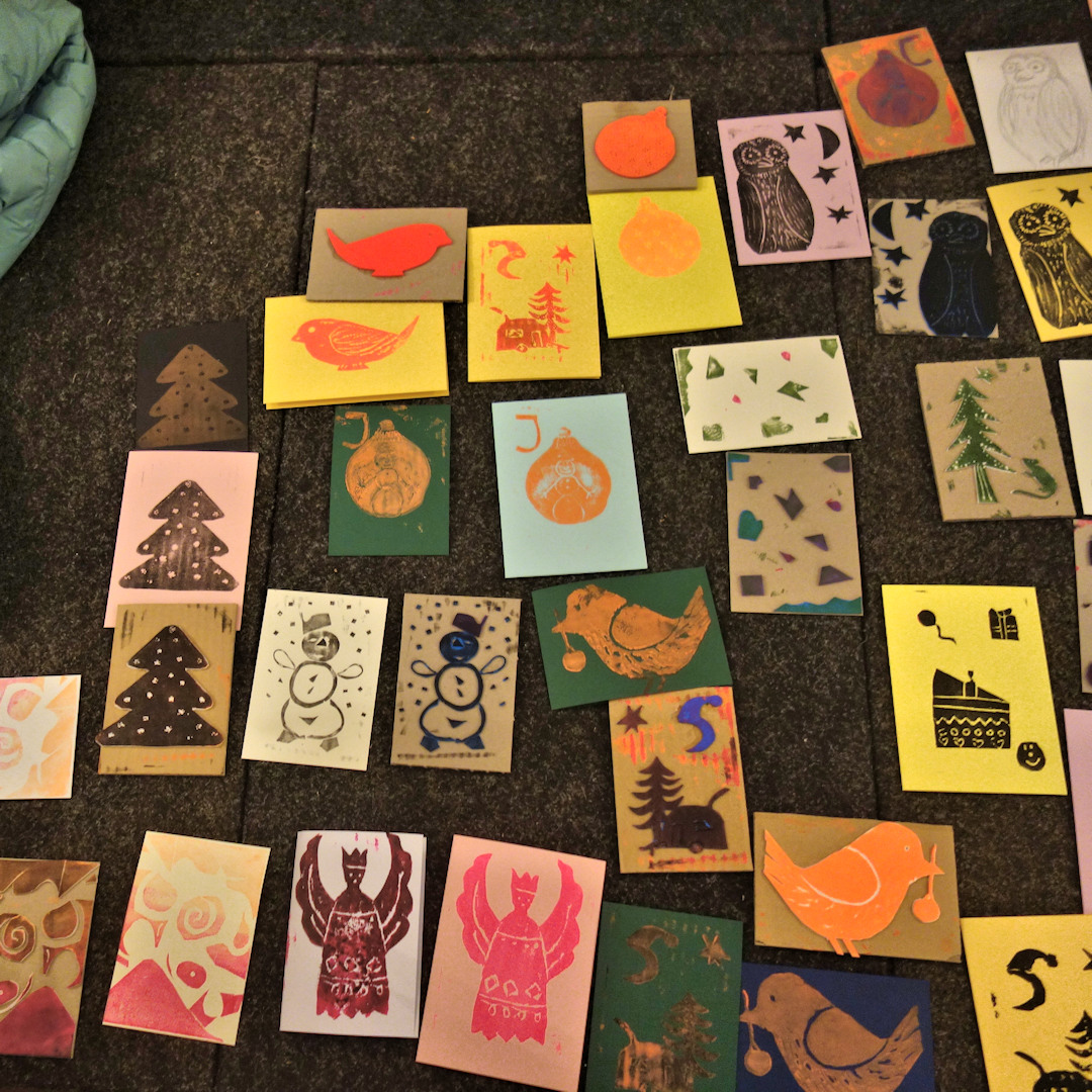 Am 20. Nov. 25 haben die Künstlerinnen Daria Bonet und Jule Vowinckel Kenntnisse und Material für den Druck von Karten mitgebracht. Mit Moosgummi und anderen Materialien konnten auch Ungeübte rasch schöne Muster und Figuren erstellen. Danke an die Künstlerinnen und Teilnehmenden!