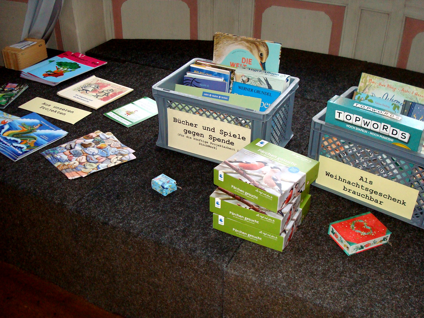Am 13.12.25 feierten wir Advent mit einem kleinen Flohmarkt voller selbstgemachter und gebrauchter Dinge und mit zwei Erzählenden. Auf den Bilder seht ihr die von Annette Prüße gefilzten Lichthäuser und Bücher. Maret holte zwei Geschichten aus der "Schublade", natürlich auch eine von einem schottischen Geizhals. Dessen Herz wurde - Adventsgeschichten sollen ja gut ausgehen - von einer armen alleinerziehenden Mutter aufgeweicht. Harry präsentierte eine Weihnachtserzählung frei nach Isabel Abedis Raben Rasputin. Insgesamt besuchten an diesem Nachmittag nahezu 40 Personen den Pavillon (natürlich immer höchstens 20 auf einmal), also ein schöner Jahresausklang für das insgesamt erfolgreiche "StöckWerk"-Projekt!!